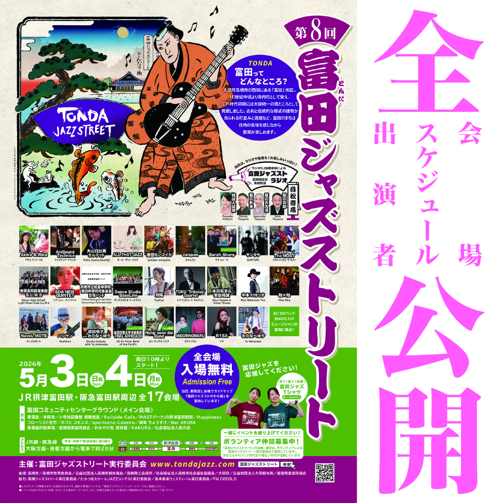 第8回富田ジャズストリートの開催日を、2026年5月3・4日に決定いたしました!!